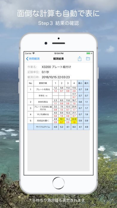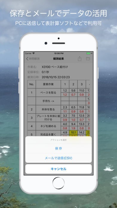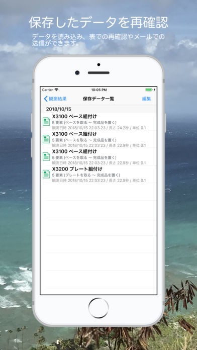 ・端末にデータを保存すれば、連続して複数工程の観測ができます