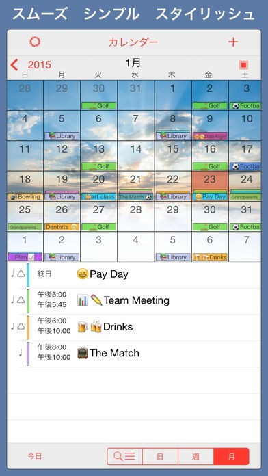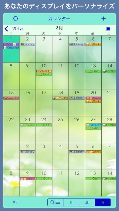 月ごとのカレンダー表示の背景を自由にカスタマイズすることができます。写真や画像を背景に設定することができて、本体内のカメラロールからインポートして設定できます。