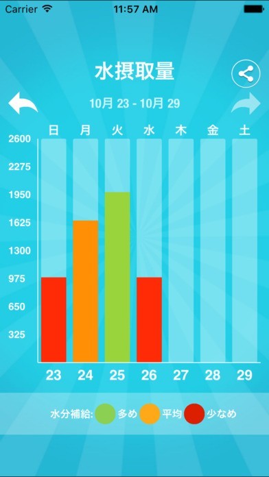 毎日摂取すべき水の労を体重や年齢などから自動的に計算してくれる!