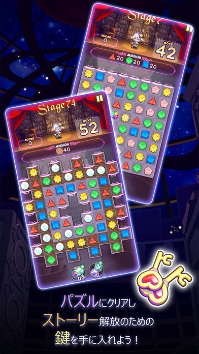 パズルとストーリーでキャラクターの素敵なボイスをお楽しみください。