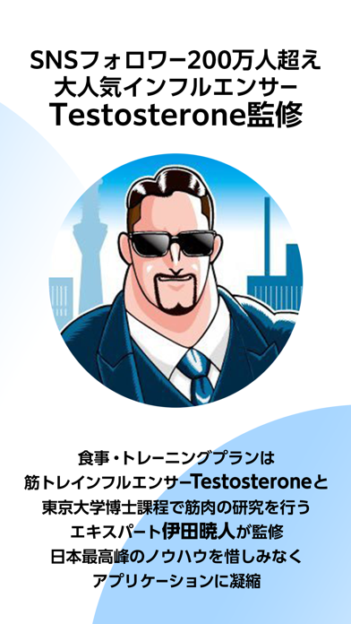 大人気インフルエンサーTestosteroneが世界をより健康(幸福)な場所にするために一から企画・開発したアプリとなります。Testosterone 自身「健康のためなら死ねる」というハードコアな健康オタクです。このアプリケーションはそんなTestosteroneのノウハウを凝縮し、各分野の専門家のチカラを集結し、徹底的にエビデンスベースにこだわり、コンテンツ一つひとつに一切の妥協なしで丁寧に丁寧に作り込んだ血と筋肉の結晶です。