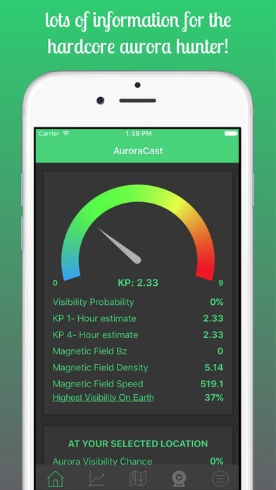 Only the best information and data for the hardcore aurora borealis hunter. Get a fast-loading and accurate KP value indicator to know when the aurora borealis will be active. AuroraCast also has live magnetic field info such as Bz, Density, and Speed!