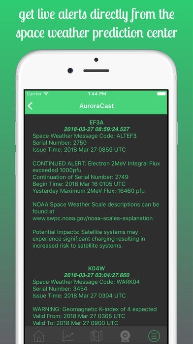 Configure the app to send you alerts for when the aurora is visible at your location, and/or when global geomagnetic activity is high! Never miss the aurora again!