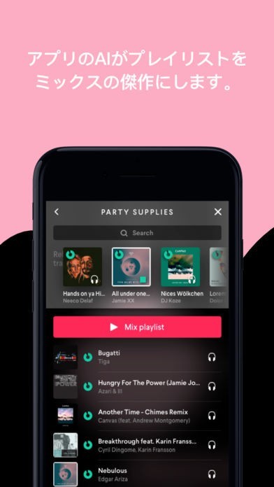 自分が気に入っている曲やプレイリストを選ぶことによって素晴らしいミックスを作成してくれる
