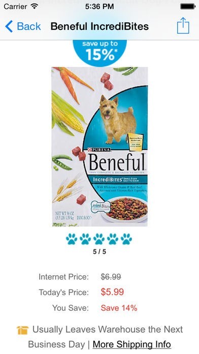 App Storeより引用Find the pet supplies you need. Relax while shopping from your home. Get your goodies shipped within a couple of days! Here you will find the lowest prices (plus coupons) and an enormous selection of healthy brands. Get the best food, treats and toys for your pet.