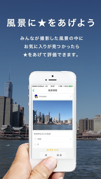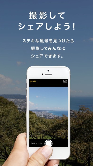 カメラで撮影した風景写真を登録し、他のユーザーに情報発信したい時にも役立つ