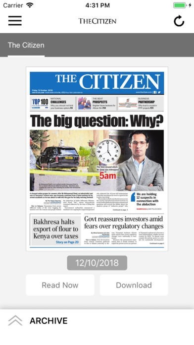 App Storeより引用Mwananchi communications Limited is pleased to bring you The Citizen Epaper reader. Read your favorite newspaper in Digital format. Get the app on your Apple phone and tablet.