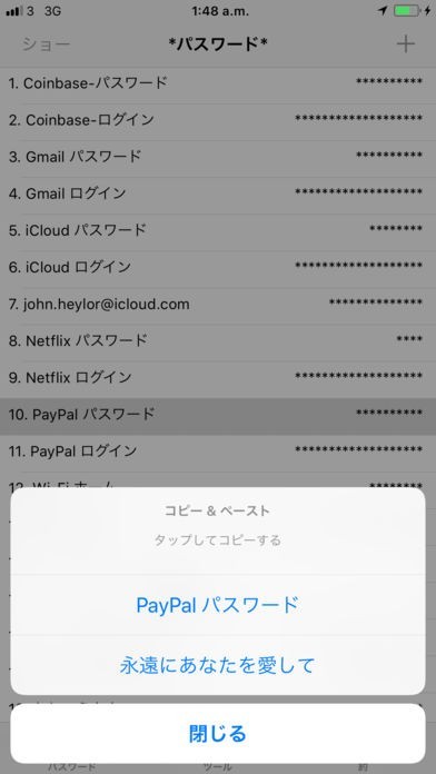 しかし、あなたは*パスワード*アプリケーションを開くだけで、必要な場所にコピー&ペーストするためのテキストや数字をタップする必要があります。