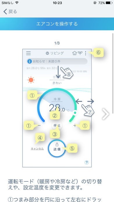 スマートフォンを使ってPanasonicの対象となっているエアコンを外出先からでもコントロールすることができるアプリとなっていて、温度設定や運転モードの変更も可能です。