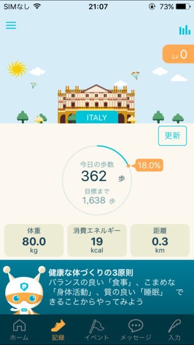毎日の歩数と体重を記録することで、行動の振り返りができるよ!