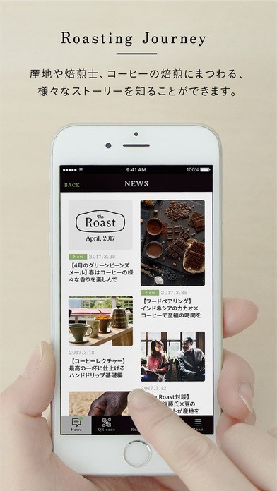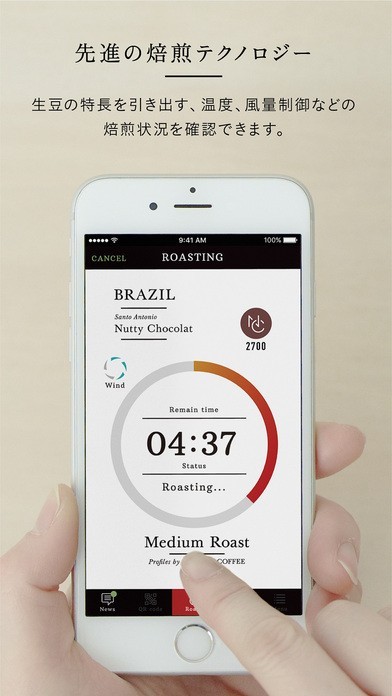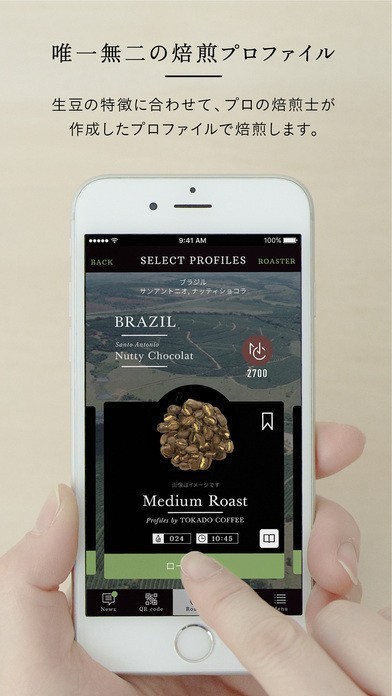 App Storeより引用"The Roast" アプリは、世界中の生豆を最適な焙煎で楽しむことができる 、スマートコーヒー焙煎機の専用アプリです。