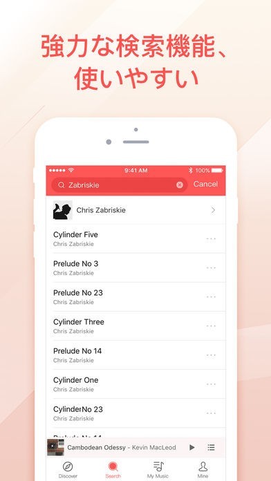 連続再生機能がうれしい。驚くほど豊富な音楽をダウンロードできるから、プレイリストもすぐ充実!