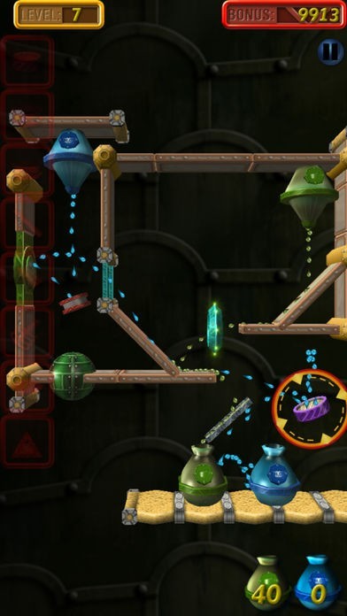壺から壺へ水滴を一定量誘導すればクリアのゲームなのですが、クリア時間の早さでスコアが決定します。悩みすぎると最終的にはスコアが0になってしまいますが、最初のうちはそれでも解ければ良いと思います。