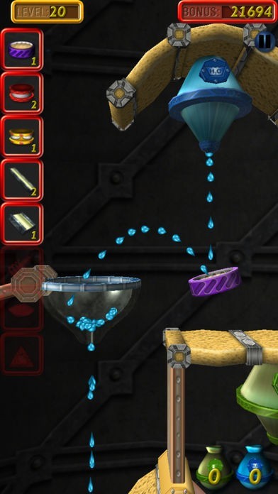 水滴の誘導のためには画面端に用意されている、反射板、トランポリンなどのアイテムを使用することになります。アイテムは必ずしも全部使用しなければクリアできないというわけではありませんので、ぜひ色々工夫をしてクリアを目指してください。