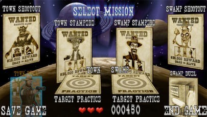このアプリには、格闘、スタンピード、シューティング、射撃練習の4種類の多彩なアクションゲームを搭載。また、3Dグラフィックとサウンド効果を駆使して作られた宇宙のウエスタンシーンはカウボーイファンには必見です。