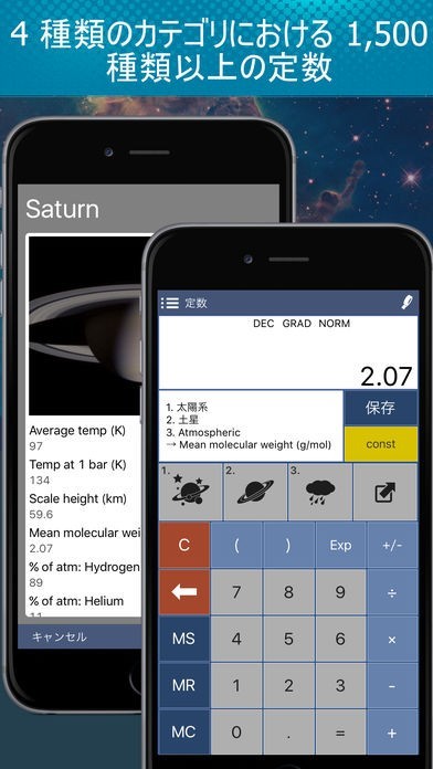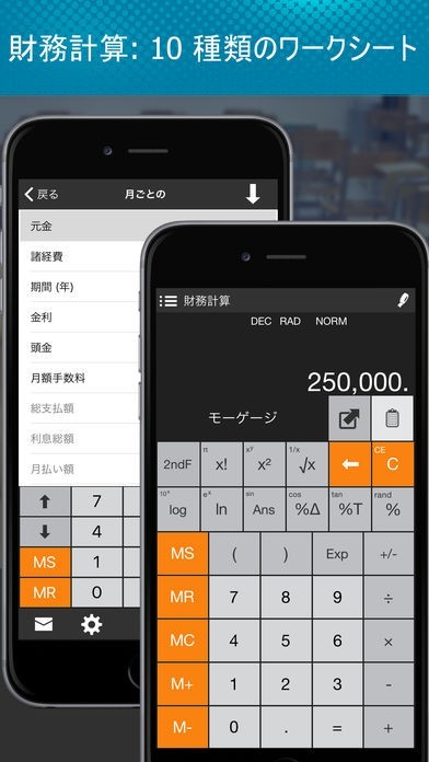 アプリでは大きく分けて10種類の計算をすることができます。科学、財務計算、単位変換など様々な分野に対応しています。どれも高度な計算ができるので、専門的な仕事でも問題なく使うことができます。
