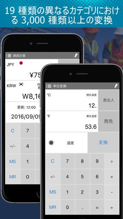 19種類のカテゴリから単位の変換ができます。変換先の単位は3000種類を超えます。仕事や研究の計算で使うと、とても便利です。操作は数値を入力するだけなので、業務の効率化に役立つでしょう。