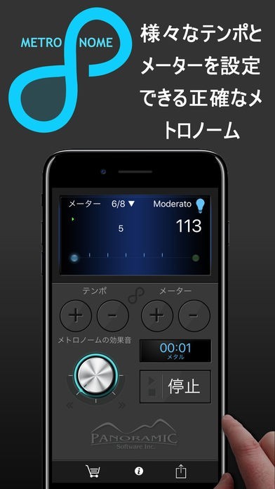 バンド練習やクラシック練習などで役に立つメトロノームアプリです。本アプリの特徴は、耳だけではなく目を使ってリズム確認できることにあります。どういうことかというと、メトロノームの音を消して、ライトの点滅でリズム確認できるのです。この機能は、あまり大きな音を出せない場所でのリズム練習に役立ちます。ですから、わずかな時間も無駄にせず楽器の練習ができるというわけです。もちろん、テンポの設定は自由自在!それだけではなく、インターフェースの変更もできるようになっています。このように自分が使いやすいようにカスタマイズできるメトロノームアプリは珍しいので、一度使うと手放せなくなるかもしれません。
