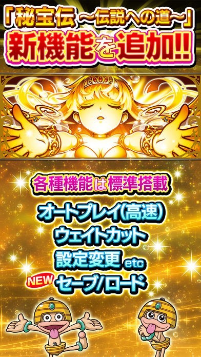 パチスロ 秘宝伝 ~伝説への道~,セーブ,ロード,設定変更,オートプレイ機能