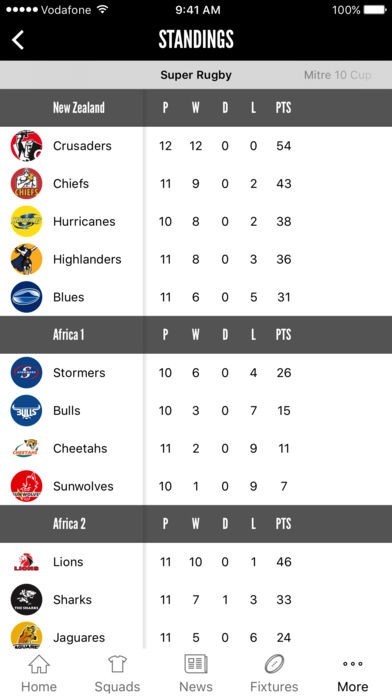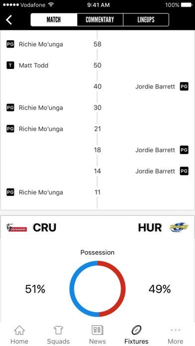 * Calendar integration allows you to keep track of the matches you care most about it being, the mighty All Blacks or your favourite Super Rugby Team.