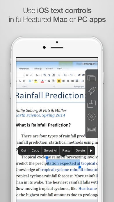 Parallels Accessというアプリはこれを使えば簡単にスマホやタブレットからデスクトップのPCのファイルにアクセスできて複雑なドキュメントの編集もできて便利です。