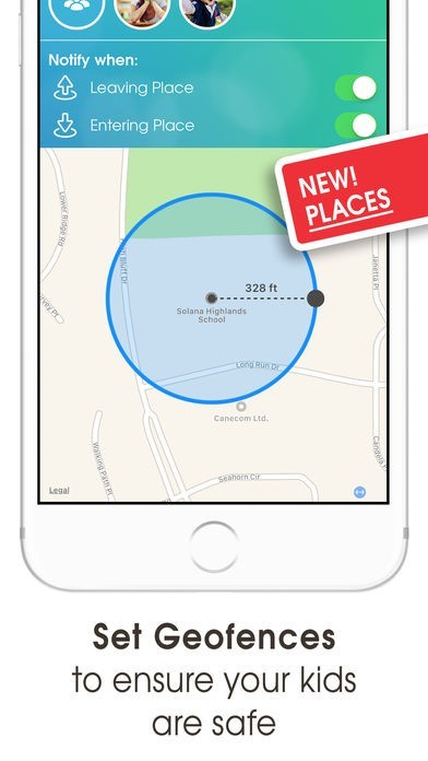 GPSを利用し、あらかじめ設定した場所を通過・到着したら通知が届くので、登下校の際に子供の安全を確認できます。また、紛失などのトラブル時も、ペアリングしたすべてのスマホに対して追跡が容易です。