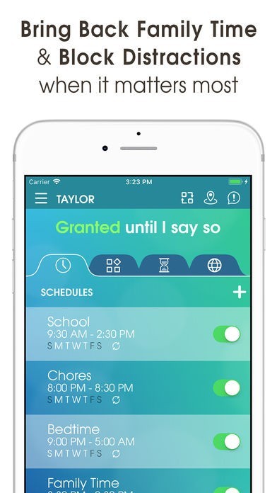 アプリではスマホの使用時間を設定でき、1週間のスケジュールを組むことができます。スマホとのつきあい方を子供自身にも考えさせることは大事です。家族みんなで話し合いましょう。