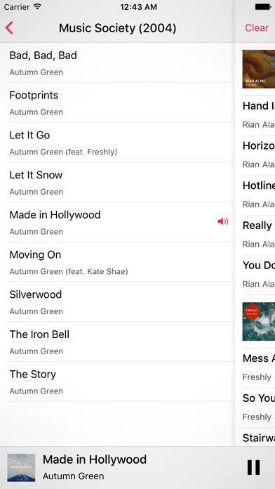 Main feature is the playlist, where you can drop music with a simple gesture. It really feels that easy: you can quickly made a playlist you need right now out of hundreds of tracks you have. All the tracks in this playlist will be nicely separated by albums or folders.