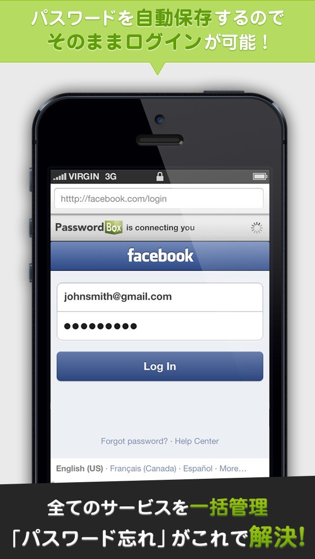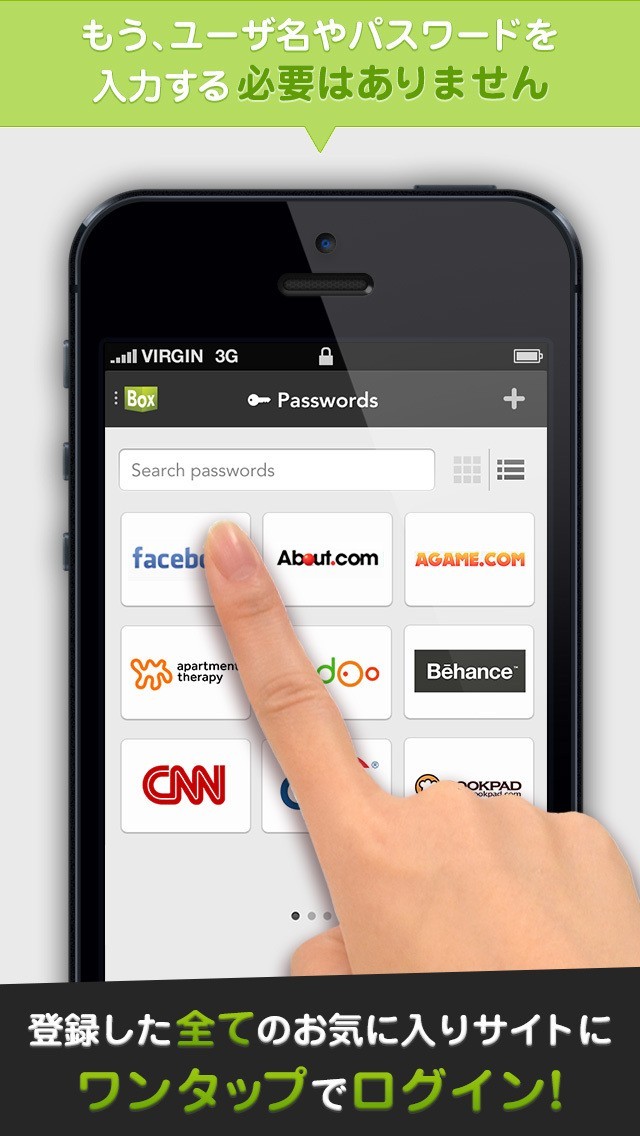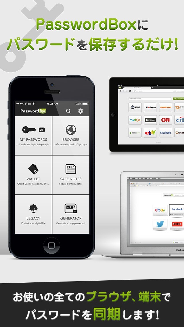 PasswordBoxがあれば二度とパスワードを忘れることはありません。シームレスな1-Tap Login、安全なシェアリング、パスワードジェネレータ、Legacy Locker、デジタルウォレット機能もご活用ください。これこそ貴方が求めていたパスワードマネージャーです。