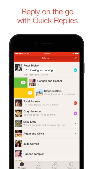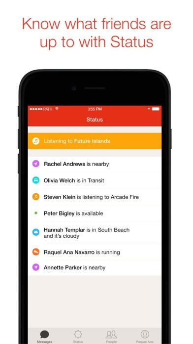 - Smart Status: A revolution in keeping up with your friends and starting off every conversation in context. Your status automatically updates in the background to tell your friends when you're in transit, in the neighborhood, listening to music, or even low on battery.