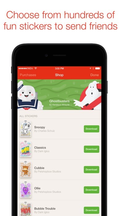 - Quality Stickers: We've hired some of the best artists in the world to imagine and create all-new fun, expressive characters. We’ve also partners with some of the world’s most beloved brands like Peanuts, South Park, Adventure Time, Transformers, and Ghostbusters (now celebrating its 30th anniversary!). Choose from 1000’s of Path Stickers when emoji just isn't enough.