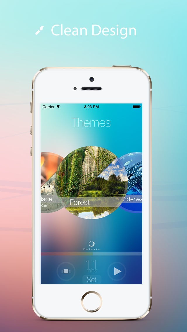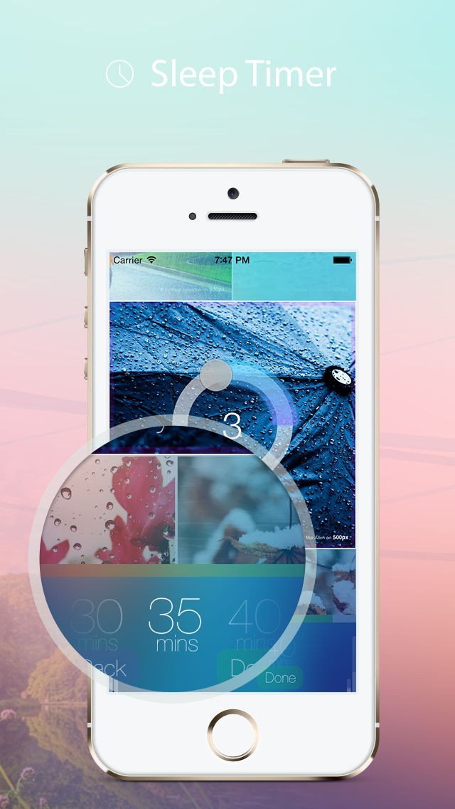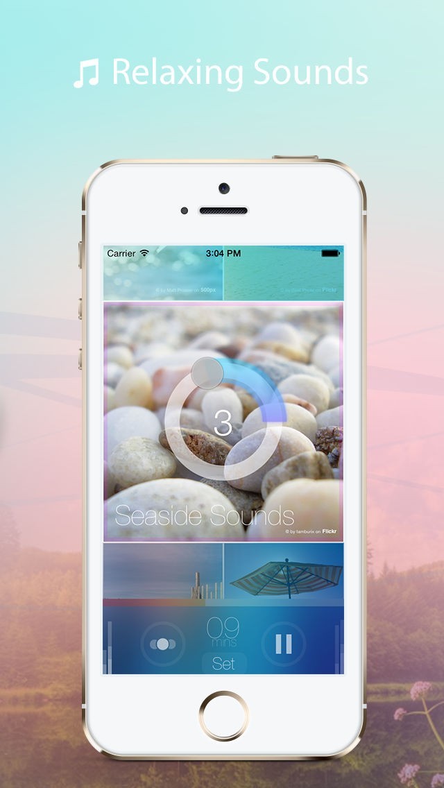 シンプルかつお洒落なインターフェースに加えて、それぞれのリラクゼーションサウンドにマッチする美しい風景写真が相乗効果となるためリラックス効果がグッと高まります。