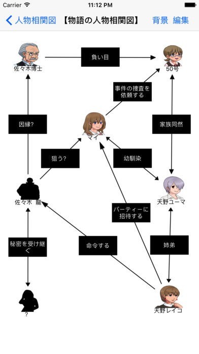よくサクセスストーリーや、サスペンスドラマなどの筋書きや設定を組み立てる時に、思わず登場人物の設定がこんがらがったり、混乱しないように、整理することができます。