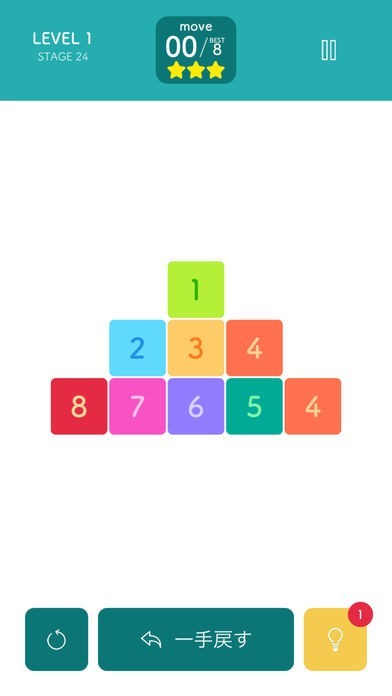 間違えてブロックを動かしてしまったときには一手戻すボタンをタップすることでやり直しをすることが可能となっているので、ミスを恐れず大胆にパズルにチャレンジできます。