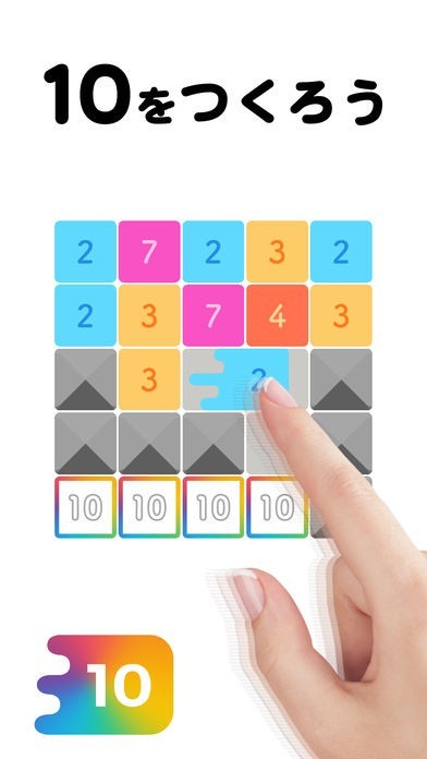 画面に表示されている数字のブロックを組み合わせて10になるように考えながら動かしていくパズルゲームアプリとなっていて、フリックだけの簡単な操作で楽しむことができます。