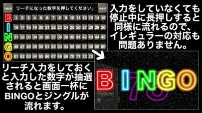 面倒なビンゴ抽選機の搬入や撤収作業不要でスペースをとらずに手軽にビンゴパーティを開催できます。また、ネオン色での数字表示やリーチナンバー同士のバトル演出もあり、あなたのビンゴ大会を華麗に演出し盛り上げてくれます。