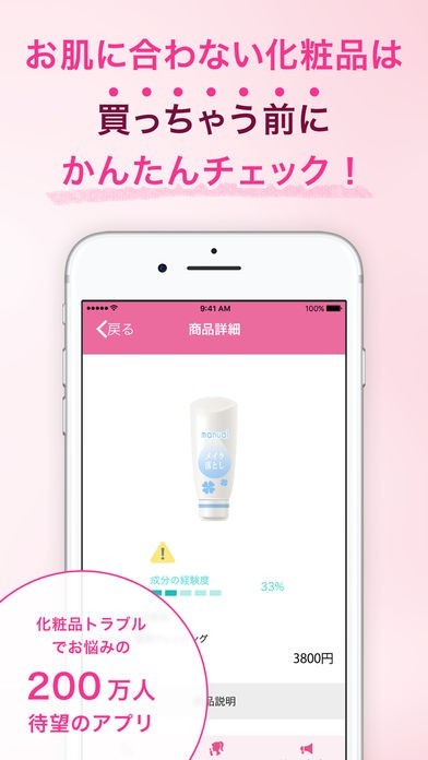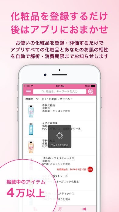 このアプリは過去の使用歴から、肌合わない化粧品の成分を弾きだしてくれます。気になる化粧品のバーコードをスキャンすると、あなたの肌に合わない成分が含まれてないか診断してくれます。