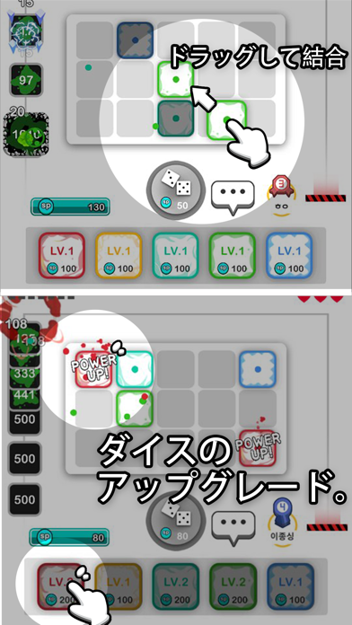 同じ数字、同じ種類のサイコロだけでタワーを完成させると1ランク上のサイコロタワーが生成されます!