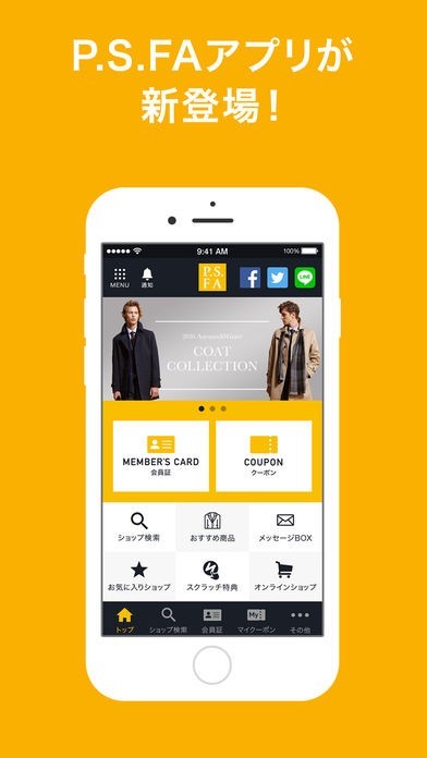App Storeより引用このアプリはビジネススーツ・紳士服のP.S.FA公式アプリです。