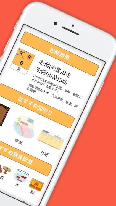 部屋の模様替えに風水を取り入れたい方のサポートとしてピッタリです。部屋毎に置くべき家具や配置するべき方角を教えてくれるので、簡単に風水的に良い部屋へと変えることが出来ます。