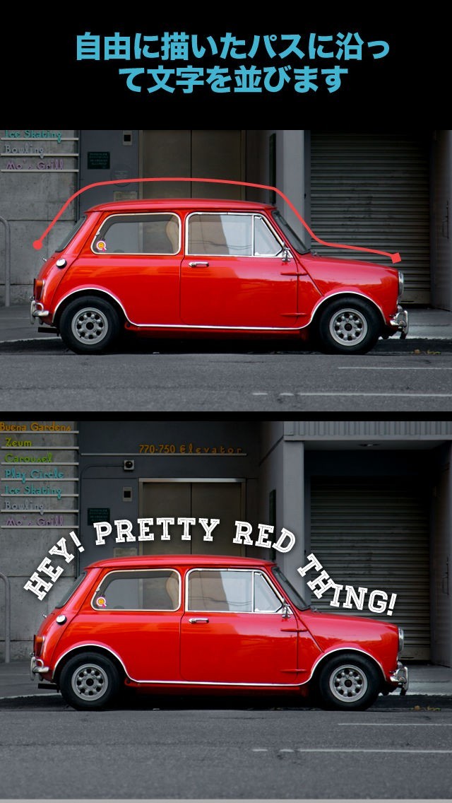 写真にメッセージを加えることでオリジナリティのある作品が完成します。複雑なデザインに沿って文字を配置することができ、背景となる画像の邪魔をしないことが特徴です。