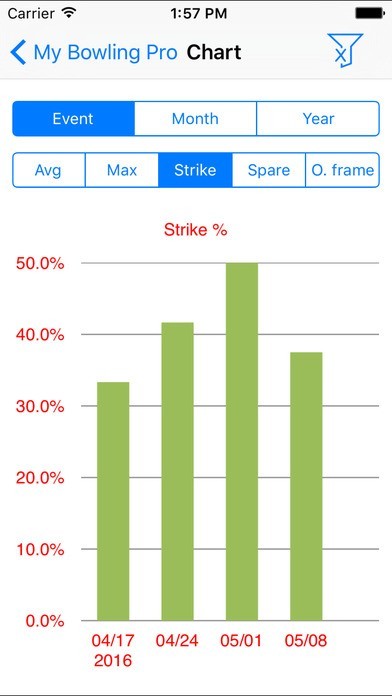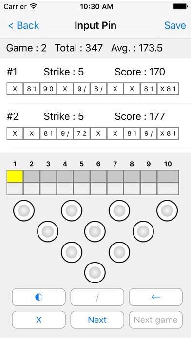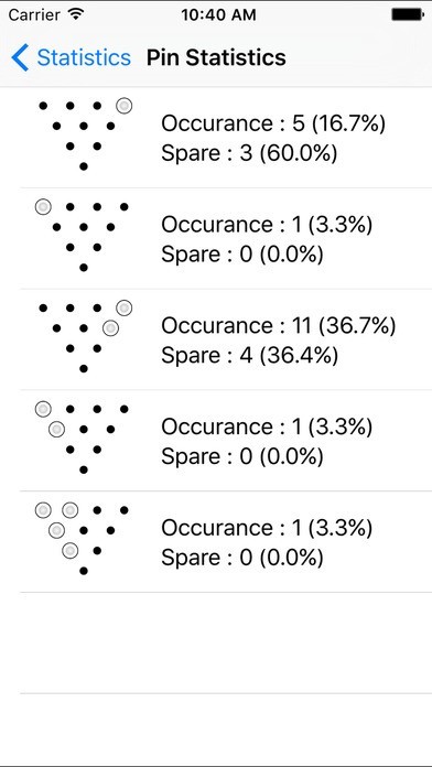 App Storeより引用Bowling is my favorite hobby. I need an app to record down the score and pin location for further analyst. For example, what is the percentage of spare of “Big four”? or how many times of continuous 4 strike ? So, I decide to write this app.