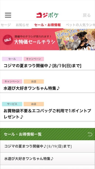 App Storeより引用ペットの専門店コジマのアプリ「コジポケ」はコジマのお店やコジマにいるワンちゃん、ネコちゃん、小動物をさがせるほか、コジマのセール情報やお得情報が届きます。