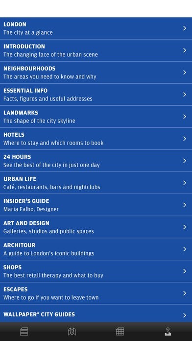 App Storeより引用Your passport to global style, Wallpaper* City Guides present an insider's checklist of all you need to know about the world's most intoxicating cities. These curated travel bibles unearth the hippest nightlife, the buzziest hotels, the coolest retail, the most influential art galleries and cultural spaces, the best in local design and the contemporary architecture that defines a city.