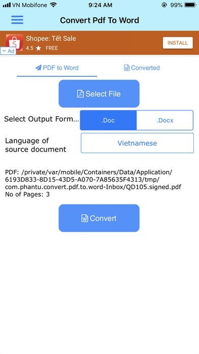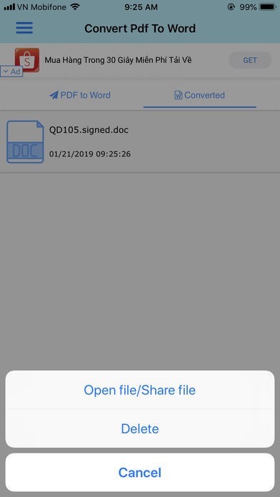 - アプリ「コンバーターpdf to word」でタブ「Converted」に変換されたファイルDOC(DOCX)を管理する