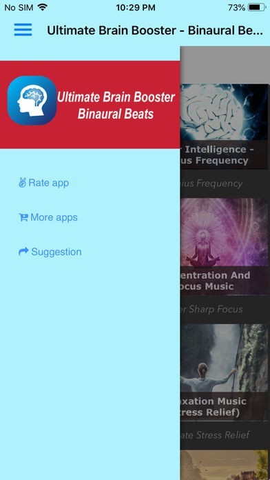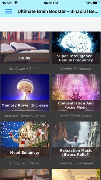 App Storeより引用Ultimate Brain Booster is a collection of Binaural Beats which are pure sine waves beats which helps you to tune your mind to any desired state. With the help of this app, you can: