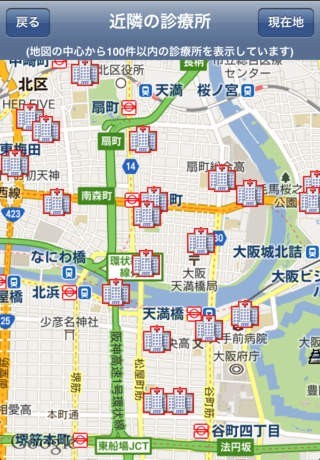 近くの診療所と連絡先をアプリからすぐに調べられる