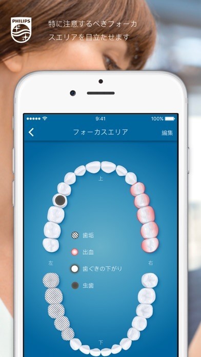 歯科専門家の方にとっても、Philips Sonicareアプリは患者様に健康的な習慣を維持していただくためのサポートになります。出血や歯ぐきの下がりのようなトラブルのある箇所を検診時に設定すれば、次の検診までの間もあなたのアドバイスはしっかり守ってもらえるでしょう。