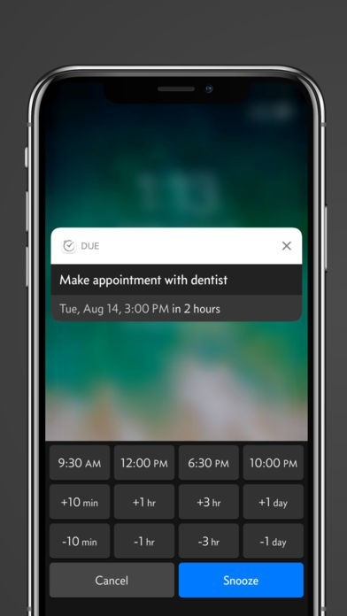このアプリのリマインダーは、スヌーズ機能を搭載しています。1分、5分、10分、15分、30分、60分の中から最適な時間を選んでおくだけで、通知時に他のことをしていたりしてリマインダーを設定した予定をうっかり忘れてしまうことを防止してくれます。