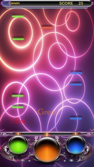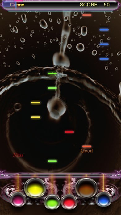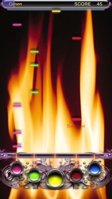レンガが一番下の線に近づいたら、対応する円をクリックしてください。あなたは音楽のテンポとリズムを感じます。